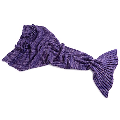 Coperta a forma di coda di sirena lavorata a maglia, fatta a mano, ideale per bambine e ragazze, comodissima e adatta a tutte le stagioni, stile sacco a pelo, Acrilico, Purple, 140x70 cm