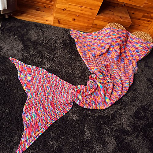 WLM, coperta a forma di coda di sirena, lavorata a maglia con motivo a squame, super morbida, per tutte le stagioni, per bambini e adulti Pink