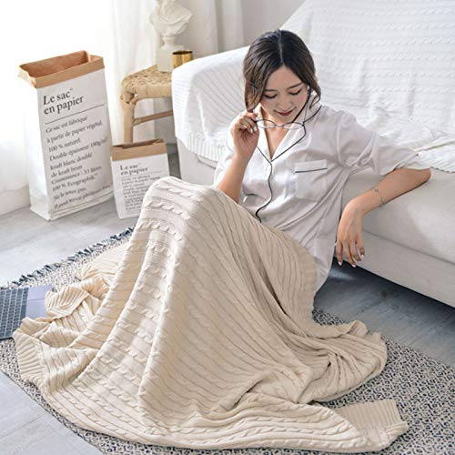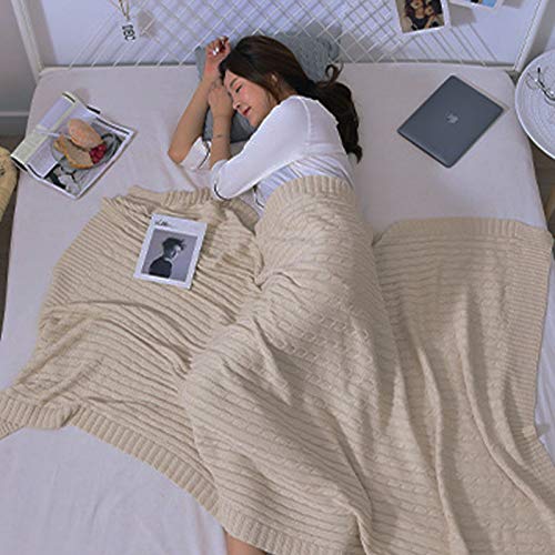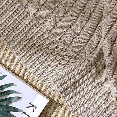 Coperta Lavorata A Maglia in Puro Cotone, Morbido Copriletto Leggero E Accogliente, 100% Cotone per Letto, Scialle da Ufficio, Poltrone Pausa Pranzo, Casa (Beige,125x180cm)