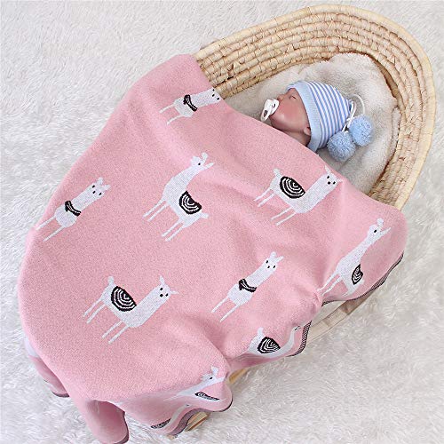 Coperta Maglia in 100% Cotone per Neonato Bambini, Surwin Super Morbida Copertina - Modello di Alpaca Carino - Multiuso Copertina Neonato Invernale per Passeggino e Culla (100x80cm,Rosa)