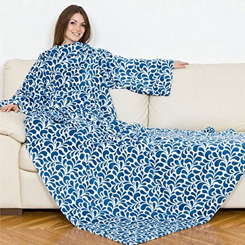 Coperta con maniche pile plaid kanguru deluxe FLORAL con tasca frontale inverno morbido