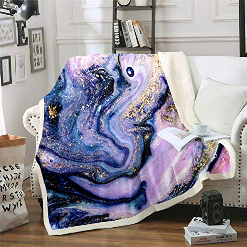 Coperta in Marmo Viola Oro Marmo Coperta Coperta Peluche Coperta per Bambini Donne Adulti Sherpa Coperta Astratta Foglio Arte sfocata Coperta per Letto Divano Letto King Size 221 x 238 cm