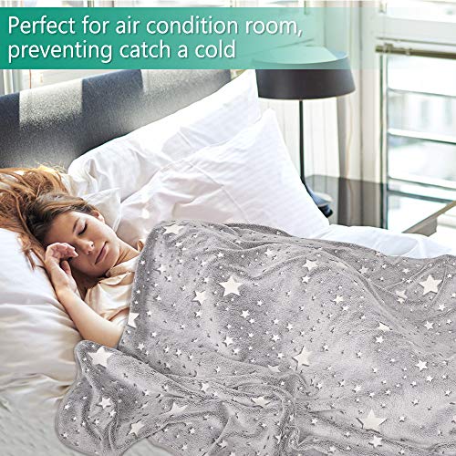 Coperta morbida Exqline Glow In The Dark coperta per bambini si illumina al buio, coperta in peluche a forma di stella, 152 x 127 cm