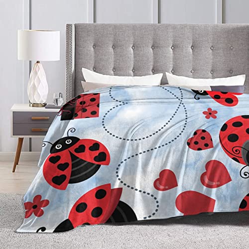 Coperta morbida in pile di flanella con coccinella e nuvola, leggera coperta in microfibra per letto, divano e divano quattro stagioni