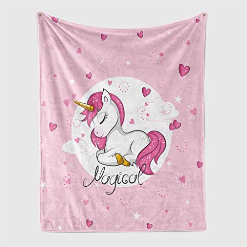 Coperta morbida a forma di unicorno, in morbida flanella, per bambini, in microfibra, con unicorno, 130 x 150 cm, rosa