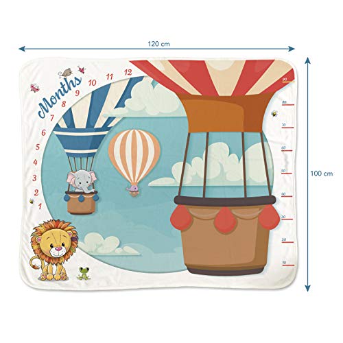 Coperta Mesi Neonato In Flanella Per Neomamme Con Sacca In Cotone | Baby Shower Primo Anno Bambino Maschio e Femmina | Copertina Regalo Nascita Lista Bebè