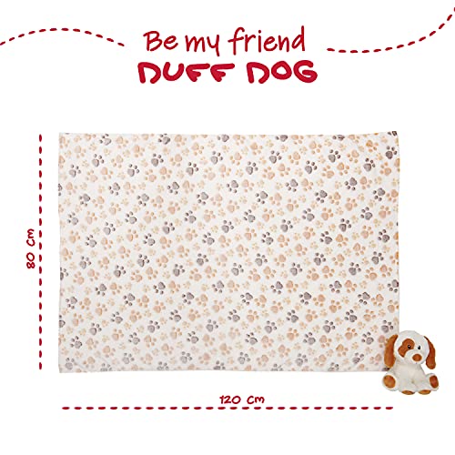 Coperta Neonato con Peluche Cane Animale Morbida e Calda - Mussola Bimbo Bimba 0 1 2 3 Anni con Pupazzo - Plaid Invernale Bambini Bambine Marrone Beige con Fiocchetto - 120x80 cm - Perletti (Cane)