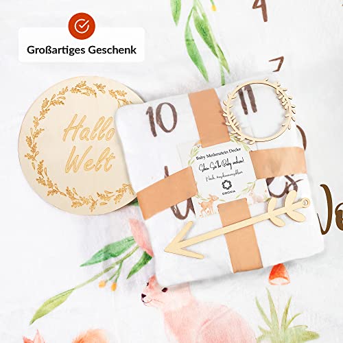 Coperta Mesi Neonato In Tedesco | Tappeto Mesi Neonato Per Maschio O Femmina, Unisex | Foresta | Regalo Baby Shower Personalizzato Per Neomamme | Copertina Mesi Neonato | Cornici In Legno Incluse