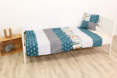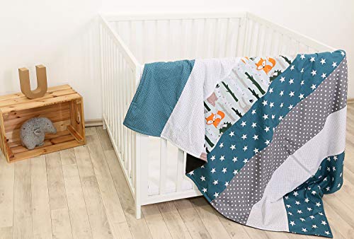 Coperta per neonato ULLENBOOM ® foresta, blu, verde (100x140 cm, ideale come copertina per la carrozzina, adatta come tappeto gioco)