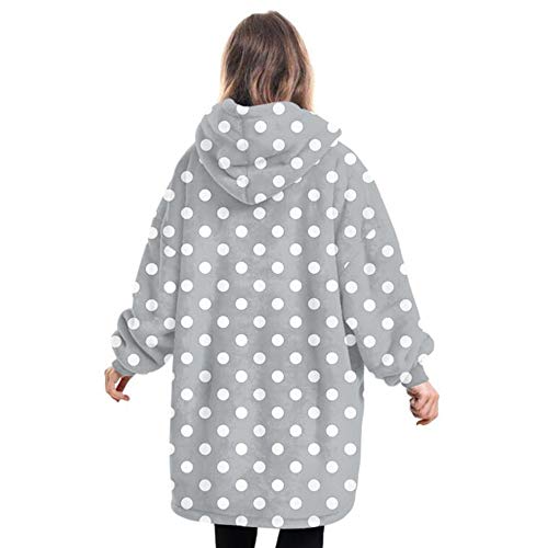 Coperta oversize con cappuccio per bambini, carina soffice Sherpa pile gigante con grande tasca, per bambini adolescenti A pois grigi. Taglia unica