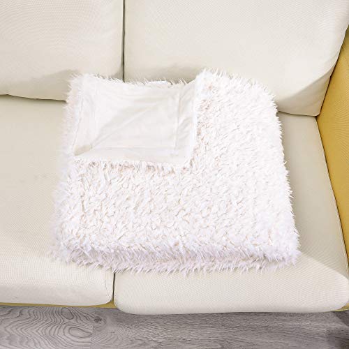 Coperta di Pelliccia Artificiale in Microfibra Coperta di Cotone 130 x 160cm Coperta in Pile Morbido per Letto e Divano, Bianca Rose