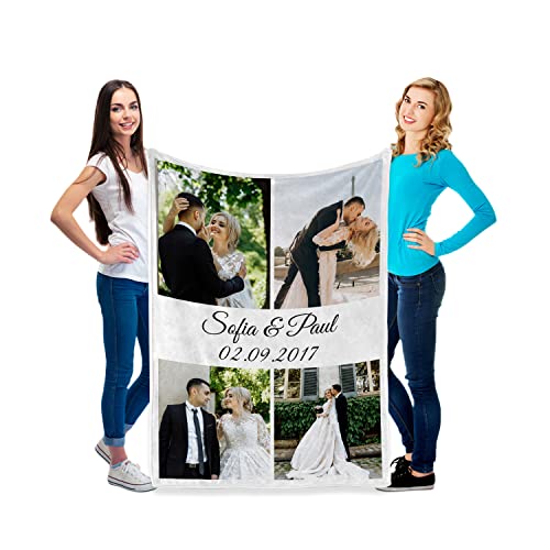 Coperta personalizzabile con foto e testo, coperta super morbida in pile “Minky” con collage fotografico, 4 foto
