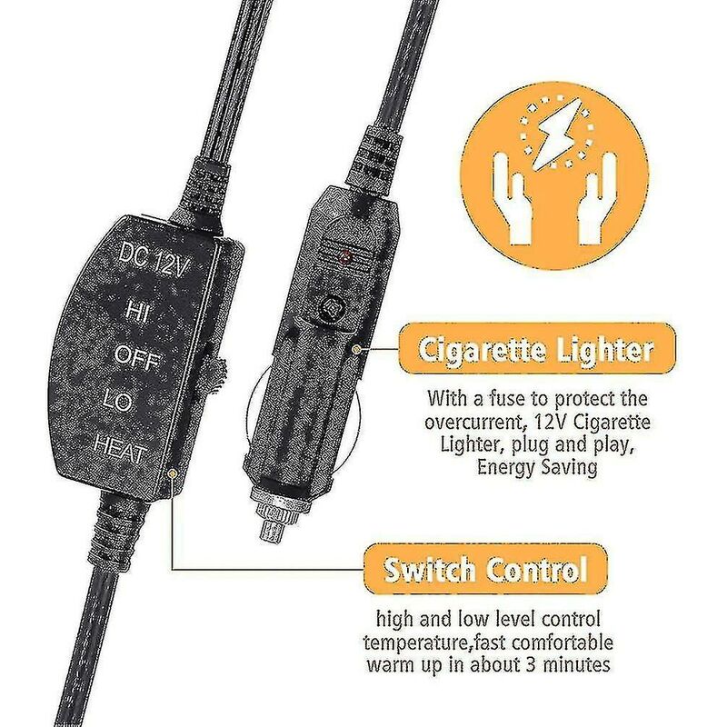 3 minuti di riscaldamento rapidoLa coperta riscaldata per auto riscalda il tuo corpo in 3-5 minuti. Riscalda le gambe e le cosce durante il freddo inverno. Promuove la circolazione sanguigna. alleviare lo stress fisico e mentale. e ridurre l'affaticamento muscolare e il dolore muscolare. Un grande amico soprattutto per quei conducenti di lungo viaggio. Adattatore per auto 12V incluso. La coperta per auto elettrica con regolatore di temperatura regolabile offre una funzione di temperatura regolabile. soddisfare le diverse esigenze di riscaldamento. Scorri semplicemente per regolare la temperatura da Alta a Bassa in base alla temperatura interna del tuo veicolo. Passa alla modalità LO: riscalda a 30-43. Passa alla modalità HI: riscalda a 40-50. Comodo materiale in pile e ottimo regalo per l'inverno/Natale 100% morbido. il pile di poliestere di alta qualità con calore offre agli utenti un caldo. giro accogliente. Goditi un inverno confortevole in auto Questo copriletto da viaggio è