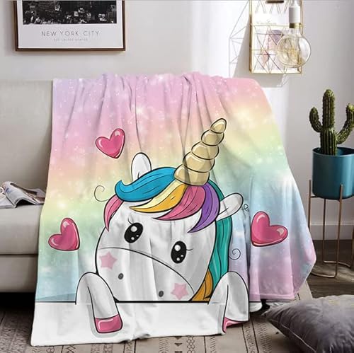 Coperta con unicorno, in morbida flanella, per ragazze, in pile, coperta per divano, coperta in microfibra (100 x 150 cm, unicorno arcobaleno)