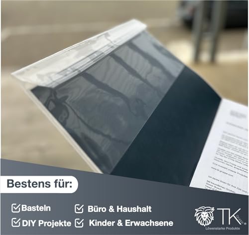 L'uso di copertine trasparenti in formato DIN A4 è davvero semplice: basta far scorrere la carta preparata nella custodia fino a quando non si inserisce esattamente, quindi chiudere saldamente la parte superiore con del nastro adesivo. Ora hai saldamente inserito il tuo lavoro nella custodia protettiva, che grazie alla sua superficie cristallina crea incredibili effetti ottici che valorizzano ancora meglio le immagini sottostanti