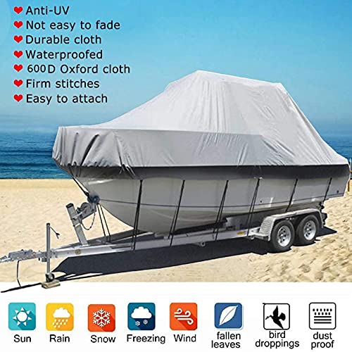 ALTA QUALITÀ: Copertura per barca impermeabile Copertura per barca rimorchiabile, realizzata in resistente Oxford 600D di grado marino con doppio rivestimento in PU, che può resistere a una pressione dell'acqua fino a 2000 Pa. Doppie cuciture con cinghie rinforzate per ridurre l'ingresso di acqua dalle cuciture - Non preoccuparti che la fodera si strappi facilmente e coli.