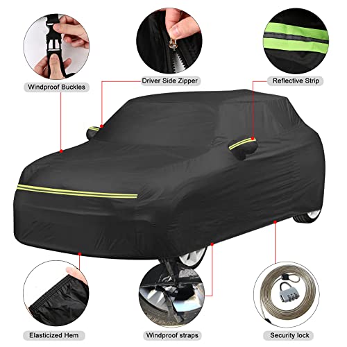 Copertura per auto completa compatibile con Mini Cooper 2002-2021, copertura auto per interni ed esterni con porta a cerniera e cinghia antivento per tutte le condizioni atmosferiche(3 porte)