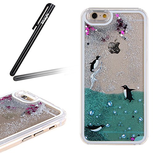 Copertura dura per la iphone 6, Hard Case Cover per iphone 6 in 3D, iphone 6 4.7" custodia rigida, Ukayfe Creative Design scorre fluttuante liquido lusso di Bling di scintillio Sparkle Stars assorbimento degli urti della copertura del respingente e anti-graffio per Apple iphone 6 4.7" + Stilo [Pinguini di balneazione]