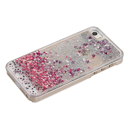 Copertura dura per la iphone SE, iphone 5/5S Custodia Case Cover Rigida per iphone SE/5/5S in 3D Trasparente, Ukayfe Creative Disegno Liquid Flowing Sparkles Argento Shinny Scintillio Bling Stars Polvere con Amore cuore Pittura Anti Scratch Bumper di Protezione Trasparente chiaro liquido Hardcase Cover con Free Stilo Penna - Amore cuore