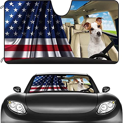Copertura Parabrezza Auto Pieghevole Parasole Per Auto Anti-Uv Parasole Per Parabrezza Anteriore Universale Per Camion Estate Auto Jack Russell Dog, Jack Russell Dog Driver Usa Giornata Patriottica