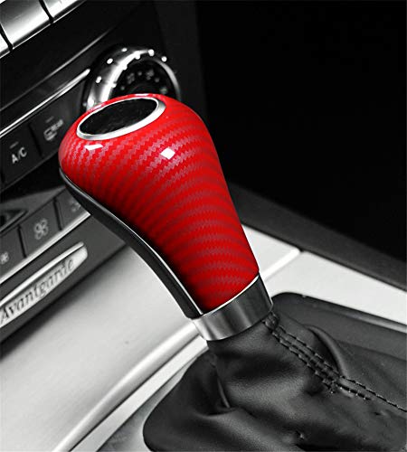 Copertura per Pomello del Cambio in ABS,MoreChioce Interno Decorazione Auto Autoadesiva Fibra di Carbonio Adesivi Gear Shift Knob Trim Sticker Compatibile con A C E G GLS GLK Class,Rosso