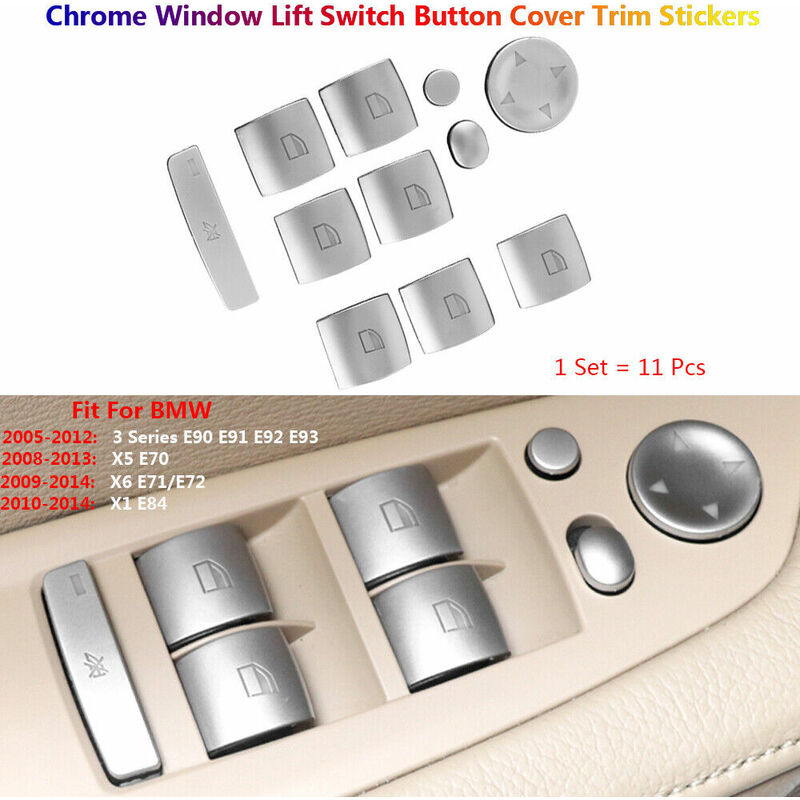 Fit For BMW Serie 3 E90 E91 E92 E93 (2005-2012) X1 E84 (2010-2014) X5 E70 (2008- 2013). /p> Colore: Argento Il pacchetto include: 1 set (11 adesivi copri bottoni)