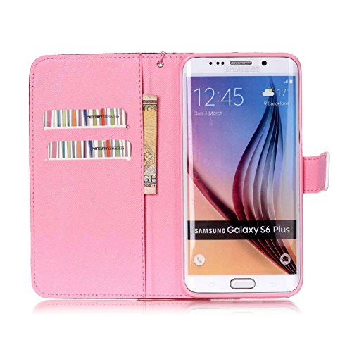 Copertura per Samsung Galaxy S6 Edge Plus in pelle, Samsung Galaxy S6 Edge Plus Custodia Portafoglio, S6 Edge Plus Case Cover, Ukayfe rosa-Città di notte e gli uccelli Diamante Design dell'unità di elaborazione di vibrazione del cuoio di protezione del basamento Shell Bookstyle della copertura della cassa con slot di carta di credito Holder e cordicella della cinghia portatile per Samsung Galaxy S6 Edge Plus + Stilo