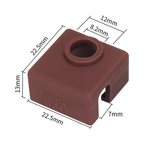 Le calze in silicone sono adatte per estrusori di stampanti 3D: Creality CR-10, CR-10S, S4, S5, CR-10 mini, Ender-2, Ender-3, Anet A8, MK7, MK8, MK9 hotend, ecc. Pacchetto incluso: 5* marrone riscaldatore blocco copertura in silicone