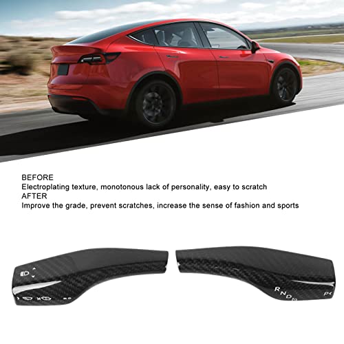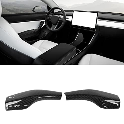 2PCS copertura della leva dello sterzo copertura del cambio per Tesla Model 3 Y 2016-2023, fibra di carbonio tergicristallo asta colonna cambio paddle leva del cambio copertura vol (Nero lucido)