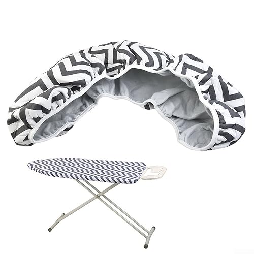 Vestibilità perfetta: con dimensioni di 150 x 50 cm (circa ), questa copertura si adatta perfettamente alla maggior parte degli assi da stiro di dimensioni standard. La sua combinazione di colori grigio e bianco aggiunge un tocco di raffinatezza al tuo spazio di stiratura.