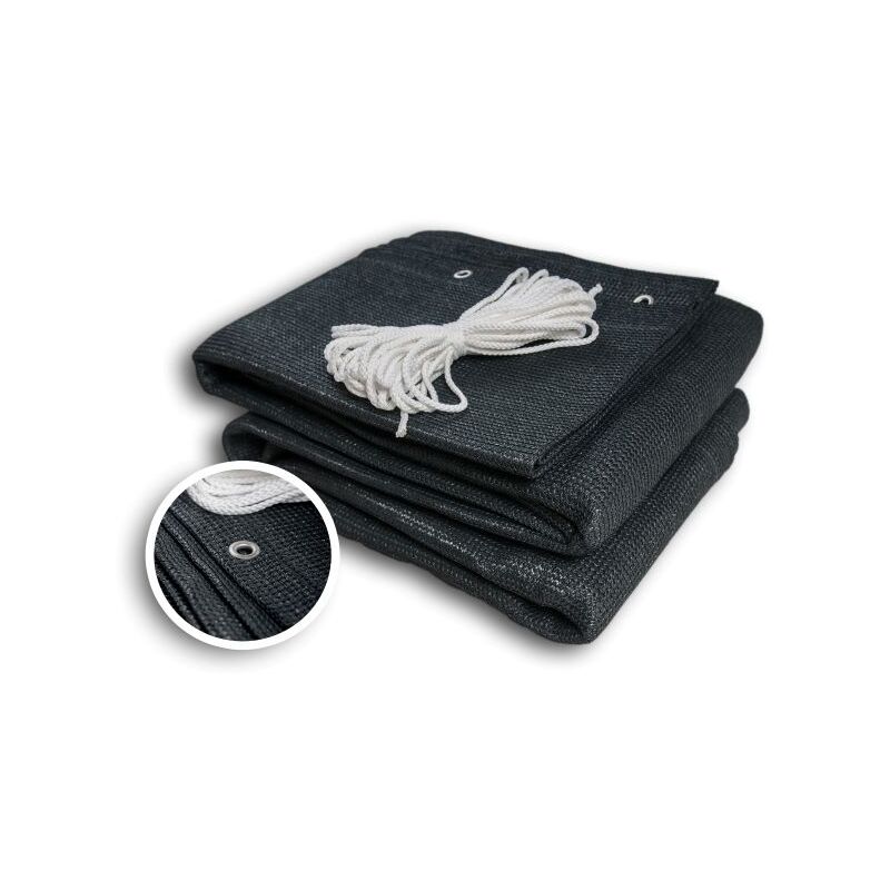 Tessuto di rivestimento, opaco 180 g/m2, ombreggiatura al 95%. Per balconi, terrazzi, recinzioni. Resistente agli agenti atmosferici e ai raggi UV. Dotato di occhielli in metallo, cordino incluso. Dimensioni: altezza 0,9 mt, lunghezza 3 mt