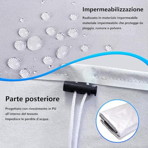【Ampia Gamma di Usi】la copertura protettiva uò essere usato come copertura tavolo giardino, copertura divano esterno, copertura tavolino da mobile balcone esterno, copertura tavolo da giardino con sedie, copertura barbecue da tavolo. Nota: si prega di controllare le dimensioni dei mobili da giardino prima dell'acquisto. Puoi usarlo tutto l'anno.