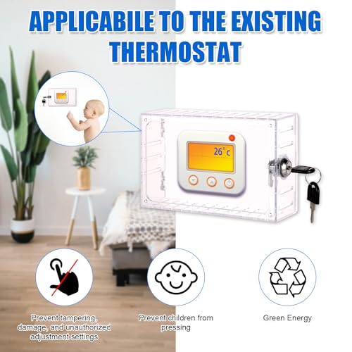 Contenuto del pacchetto: riceverai una cassetta sicurezza termostato, 2 tasti, un rotolo di nastro trasparente e un pacchetto di accessorio di assemblaggio.Il prodotto può impedire ad altri di regolare o danneggiare il termostato.