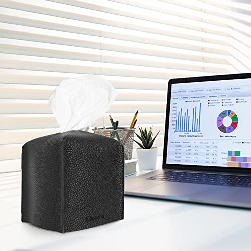 2 coperture per fazzoletti quadrate, in pelle sintetica, moderne, delicate e delicate, decorative per bancone da bagno, hotel, auto, ufficio, casa, 15 x 15 x 5 cm (nero)