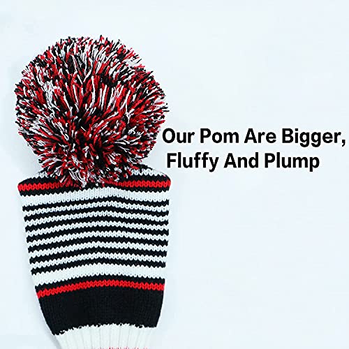 Set di 3 coperture per testa da golf con pompon per legno 1, 3, 5 Driver Fairway Hybrids Golf Legno con etichetta numerata (conducente + campo + ibrido), strisce bianche e rosse