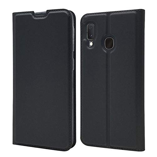 COPHONE - Cover Compatibile Samsung Galaxy A20E in Pelle Nera. Custodia a Portafoglio in Pelle con Chiusura Magnetica per Galaxy A20E