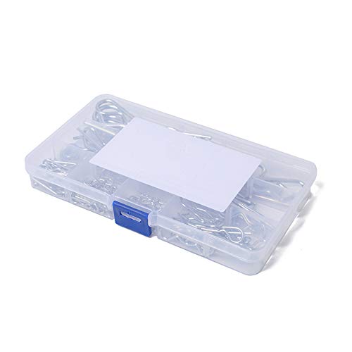 100 pcs Copiglie, Coppiglie e Mollette a R Clip corpo guscio Resistente Zincato Spring Chiavette Coppiglie R Clip Coppiglie Tipo R Perno di Clip del Corpo Assortimento Coppiglie Elastiche con Cassetta