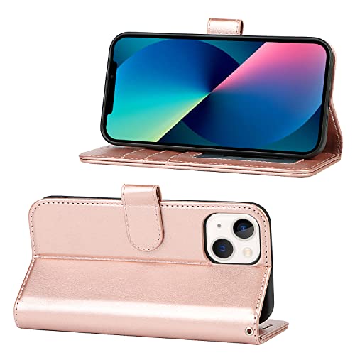 Copmob Cover iPhone 14 con Cordino,Flip Fiori Portafoglio Custodia in Pelle,[4 Porta Carte][Supporto Stand][Magnetica],Custodia Cover Libro per iPhone 14 - Oro Rosa