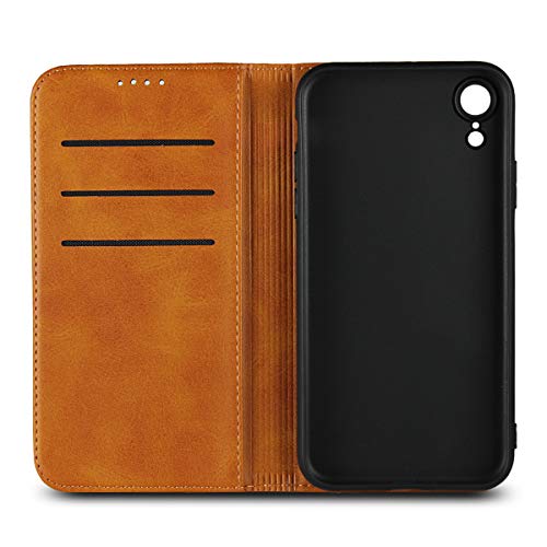 Copmob Cover iPhone XR,Custodia iPhone XR,Premium Flip Portafoglio Custodia in Pelle,[4 Slot][Supporto Stand][Chiusura Magnetica],Caso Libro Custodia per iPhone XR - Cachi