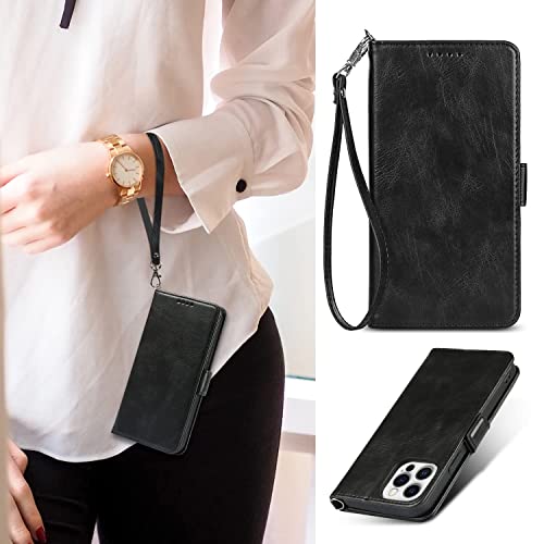 Copmob Cover per iPhone 13 Pro,Flip Portafoglio Custodia in Pelle [3 Fess][Blocco RFID][Chiusura magnetica],Custodia a libro per iPhone 13 Pro, colore: Nero