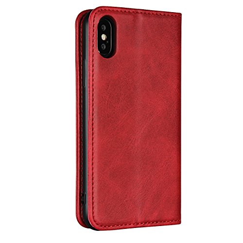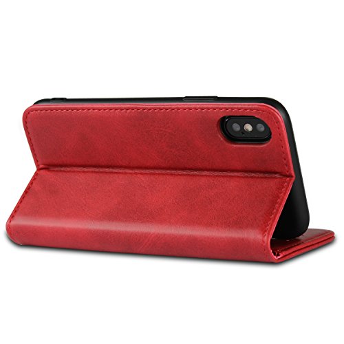 Copmob Cover iPhone X,Cover iPhone XS,Premium Flip Portafoglio Custodia in Pelle,[4 Slot][Supporto Stand][Chiusura Magnetica],Caso Libro Custodia per iPhone X/XS - Rosso