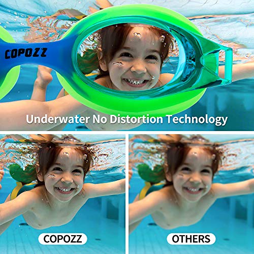 Copozz Occhialini da nuoto per bambini, 3-12 anni, antiappannamento, protezione UV, non entra acqua, lenti a Specchio/trasparenti, con custodia di protezione, #2-Blue