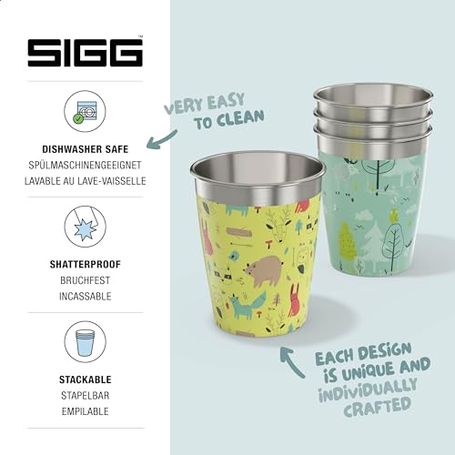 Confezione e dettagli - SIGG Set tazze per bambini (4 x 0.35 L) in acciaio 18/8, riciclabili e prive di BPA, alternativa ideale alle tazze e alle bottiglie usa e getta, lavabili in lavastoviglie.