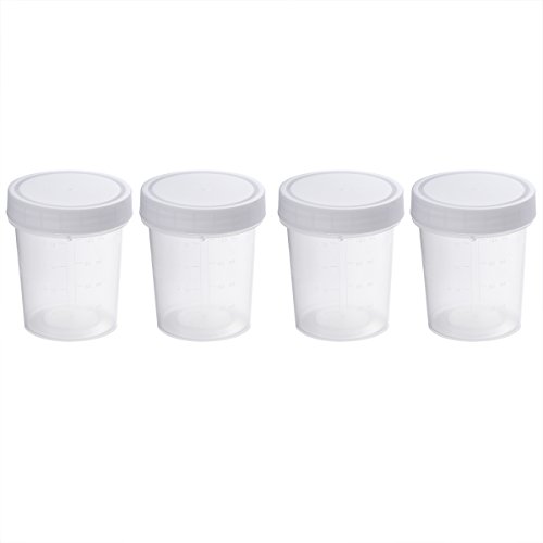 Coppa per campioni in plastica, 4 pezzi 120ml Contenitore per urina con scala e coperchio a vite (bianco)