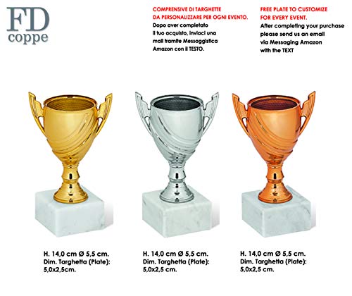 Coppa Trofeo in ABS con Base in Marmo Tris Composto da 03 Coppe Oro - Argento - Bronzo - Compresa nel Prezzo Etichetta Personalizzabile- Trio Coppe 1° 2° 3° CLASSIFICATO 98028