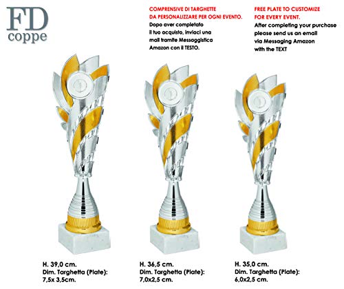 Coppa Trofeo - in ABS con Base in Marmo - 03 Coppe 1° 2° 3° CLASSIFICATO - COMPRESE nel Prezzo 03 Etichette Personalizzate - Colore Argento E Oro 98014