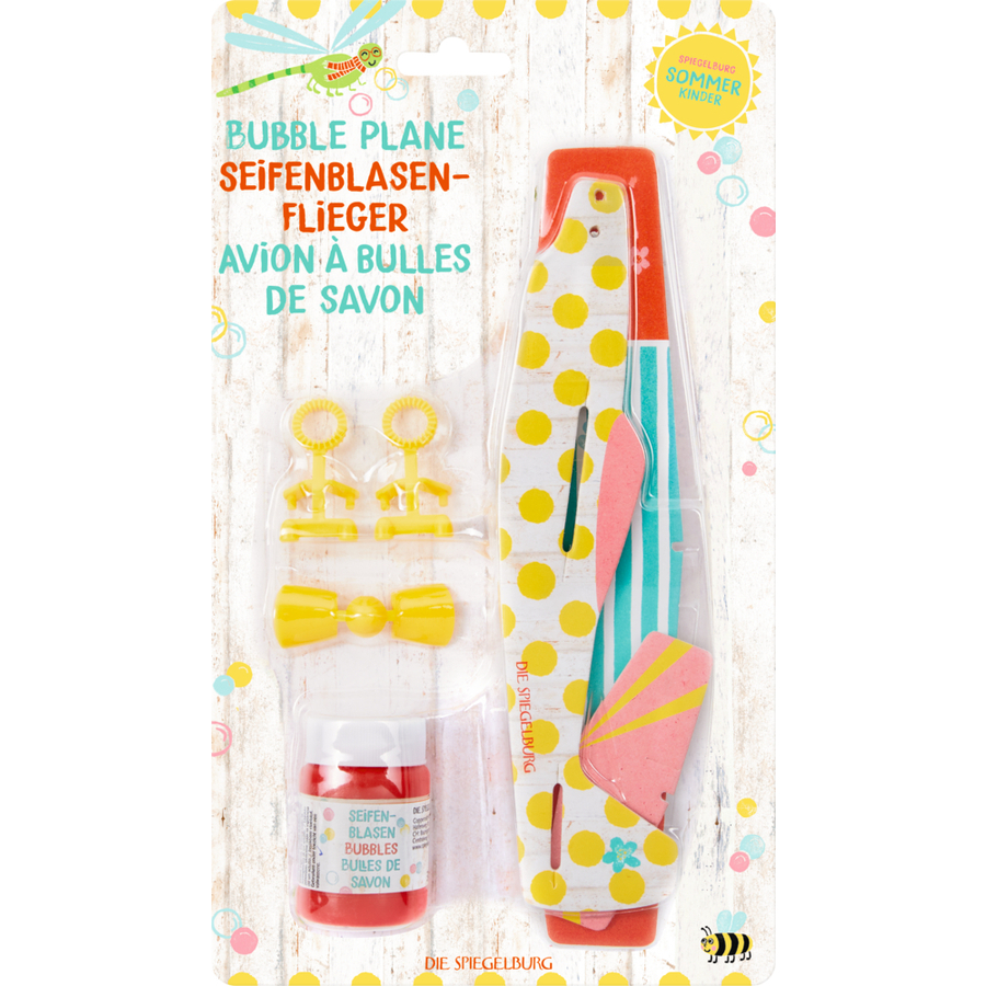 Dettagli del prodotto: Età: da 3 anni L'aereo colorato lascia dietro di sé una scia di bolle di sapone colorate e scintillanti Da montare, senza colla Attaccare il bastoncino per soffiare le bolle alla base dell'aeroplano, immergerlo nella ciotola piena di liquido per bolle e lasciarlo volare via. Dimensioni e materiale: Dimensioni assemblate (lunghezza x larghezza x altezza): 15 x 27 x 4 cm Materiale: Realizzato in plastica La consegna include: 1 x aeroplano 1 x soluzione per bolle di sapone (30 ml) Avvertenze e istruzioni di sicurezza: Attenzione: non adatto ai bambini di età inferiore ai tre anni. Contiene piccole parti che possono essere ingerite. Pericolo di soffocamento! In caso di contatto con gli occhi, sciacquare immediatamente e abbondantemente.