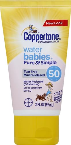 Coppertone WaterBabies Pure & Simple Tear Free Mineral Based Sunscreen Lotion Broad Spectrum SPF 50 (2 fluidi ounce, misura da viaggio