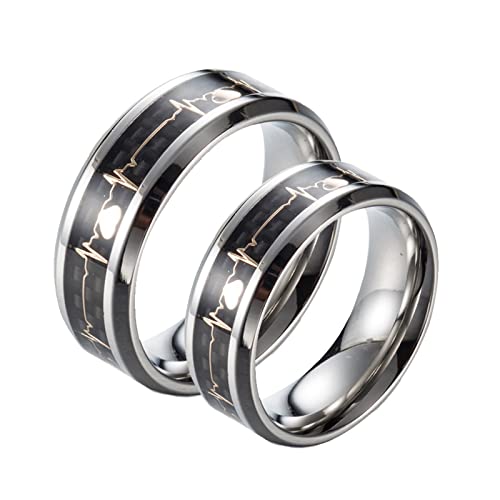 Coppia di Anelli Uomo Donna, Anelli Matrimonio Coppia Acciaio Misura 15 e Taglia 15 Anello in Fibra di Carbonio con Battito Cardiaco