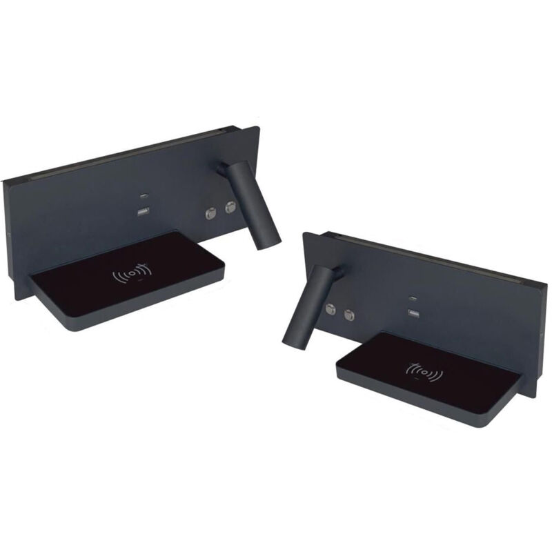 Coppia Applique Lampada Letto Parete Ricarica Wireless Nero Luce Naturale Rivoluziona il tuo concetto di illuminazione domestica con la nostra lampada da parete multifunzionale con caricatore wireless integrato! Questo elegante applique non solo offre una luce brillante e regolabile per creare l'atmosfera perfetta in ogni ambiente, ma ti consente anche di mantenere i tuoi dispositivi sempre carichi e pronti all'uso senza ingombranti cavi. Caratteristiche tecniche: Applique da parete Doppio interruttore Colore: Nero Potenza: 15W Grado di protezione: IP44 Materiale: Alluminio Fascio di luce superiore Temperatura della luce: Luce naturale 4000K Installazione murale (senza incasso) e semplice da collegare Porta Type-c Porta USB Ricarica Wireless (La funzionalità di ricarica wireless è compatibile solo con una selezione specifica di smartphone. Si consiglia di verificare la compatibilità del proprio dispositivo prima di utilizzare questa modalità di ricarica.) Voltaggio: AC110-265V
